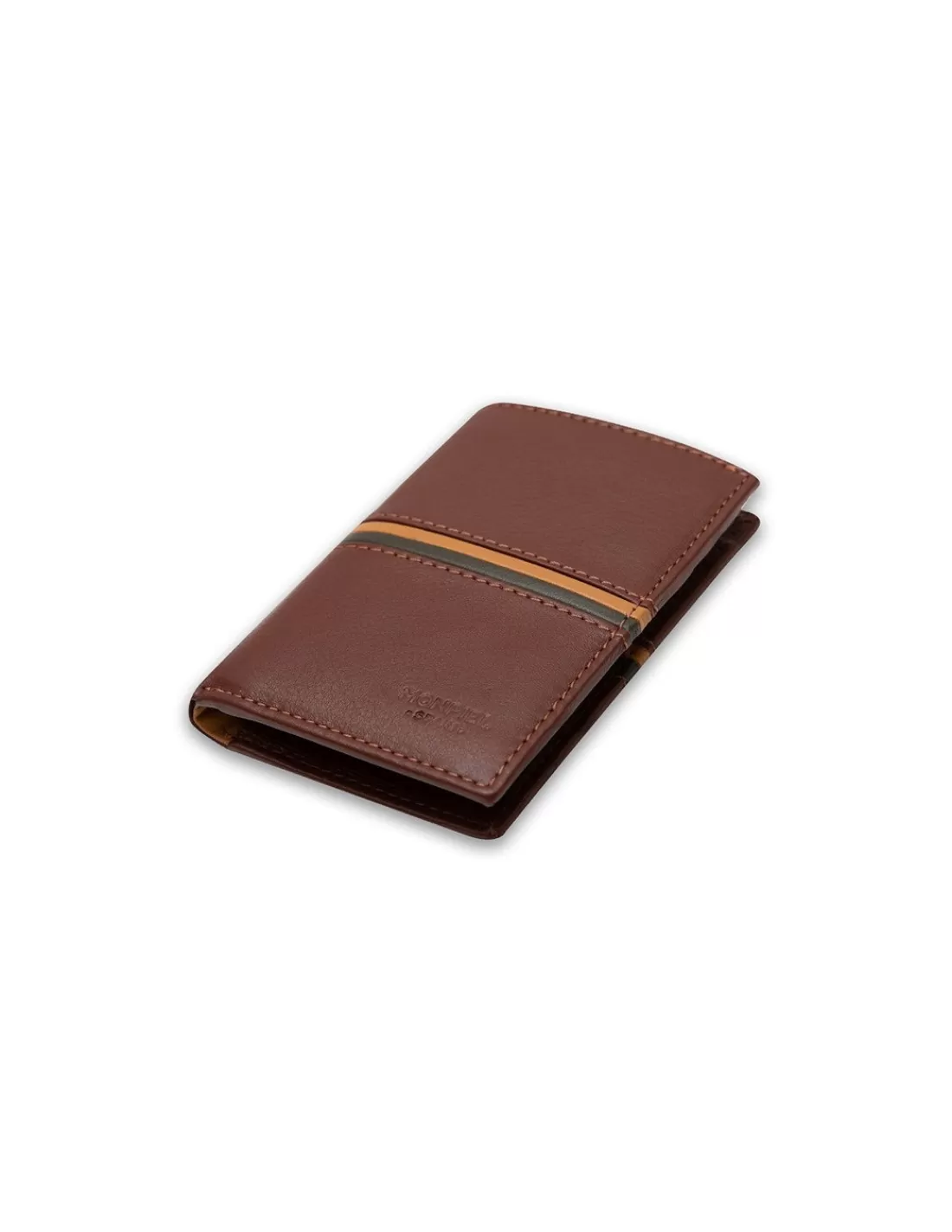 Billetero de hombre en piel. Fabricado en un diseño clásico pero con el detalle de dos franjas a color en tono cuero y tono verde. Perfecta para el día a día y suave gracias a la calidad de la piel. Contiene capacidad de 8-10 tarjetas, billetero y monedero. Disponible en dos tonalidades: Habana y marrón. Fabricado en piel con una calidad excelente.
