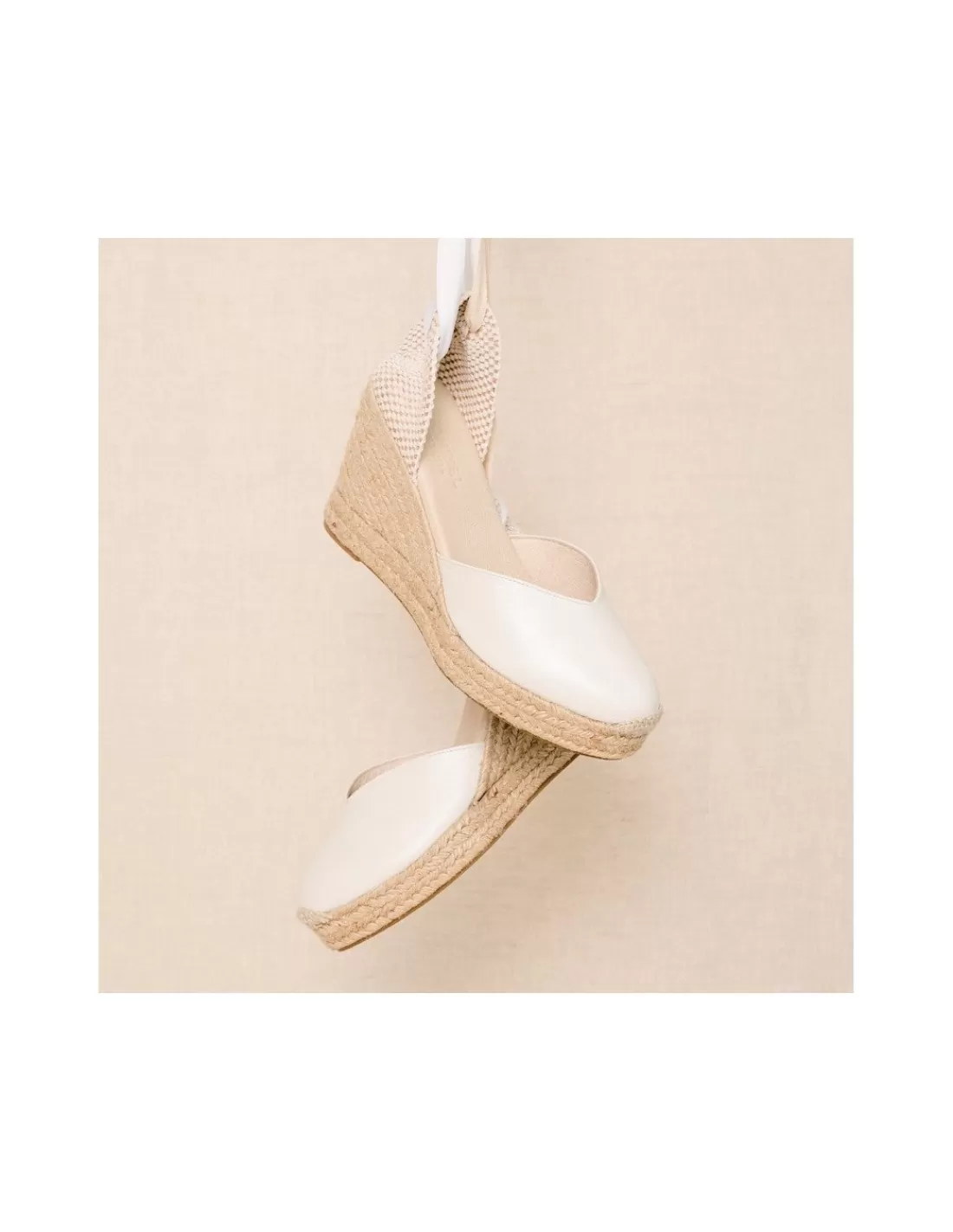 Un básico clásico pero muy especial. Así es la Alpargata de piel. Fabricada 100% en piel nácar natural, es un básico atemporal no solo por el color en nácar sino por la calidad de estar diseñada en piel. Escote de pico y el cierre distinto al resto de alpargatas de cuña, tiene una doble cinta de algodón y raso bicolor que le aporta el toque chic y atrevido. Incluye una plantilla de gel, cuña de 9 cm y plataforma de 2 cm para mayor confort. Ideal para novias atrevidas.