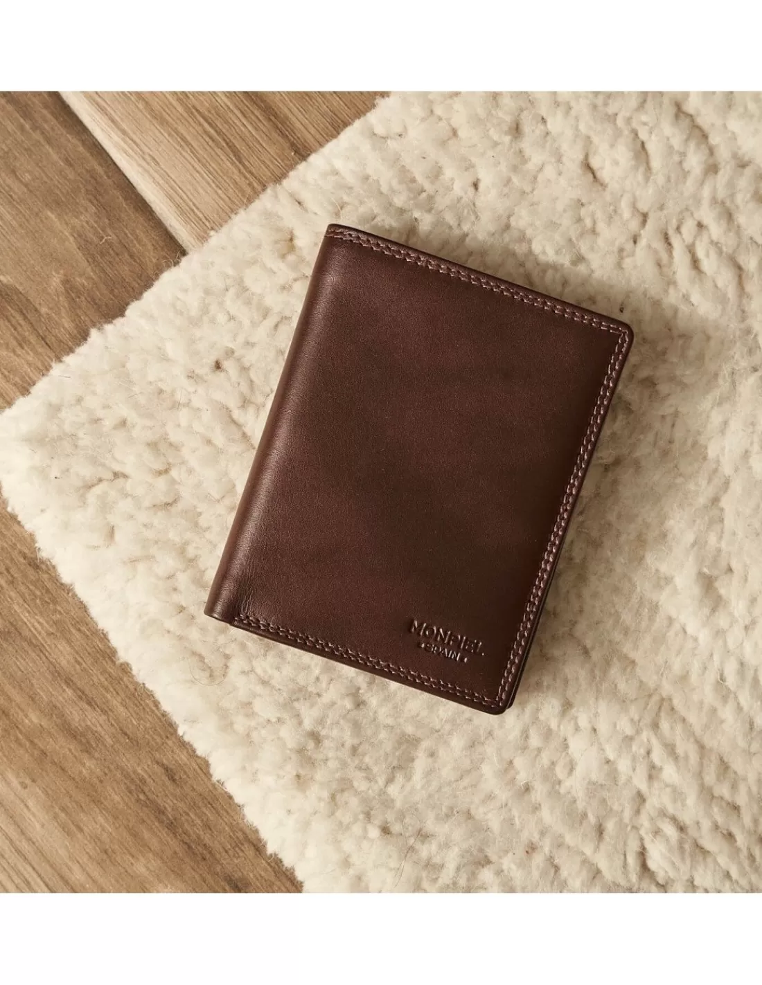 Cartera con monedero interior de caballero elaborada en piel 100% natural. Diseño clásico con doble costura. Capacidad para 9-11 tarjetas, doble billetera y monedero. Disponible en dos colores: negro y marrón.