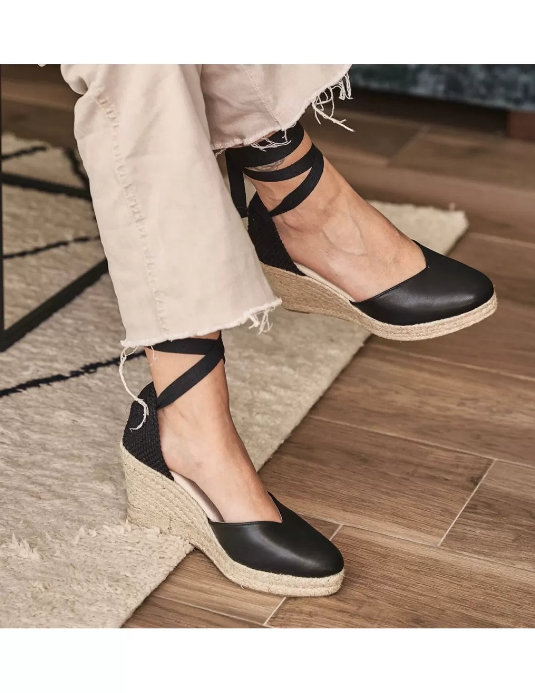 Cada alpargata de piel ha sido cosida una a una de forma artesanal, con cuidado, haciendo cada una de ellas especial. Pensando en tu comodidad y confort incluye el interior y exterior de piel, suela de piel y plantilla de gel, su cuña de yute de 9 cm y plataforma de 2 cm, comodidad total en cada pisada. La lazada de la cinta es de algodón con terminación en piel.