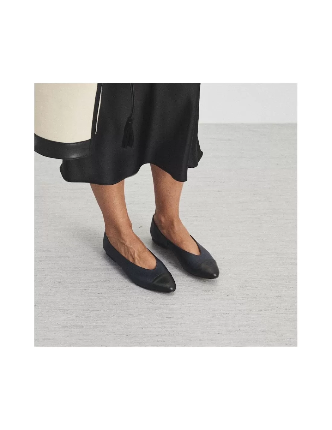 Descubre la versatilidad y el estilo con nuestra Bailarina Amelie Bicolor Plana, un básico renovado en esta colección. Esta bailarina de piel con puntera negra combina la sofisticación con la sobriedad de los colores clásicos, ya que está disponible en azul marino con negro. Fabricada en piel auténtica de primera calidad, esta bailarina plana (sólo tiene 1 cm de tacón) ofrece un ajuste suave y cómodo para el pie, asegurando comodidad todo el día. Ideal para llevar en la oficina o en tus salidas casuales, la Bailarina Amelie de MONPIEL será el básico perfecto para esta temporada.
