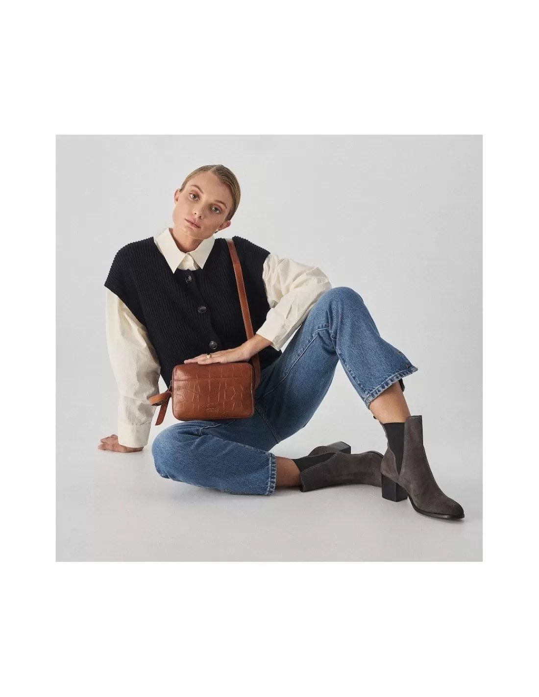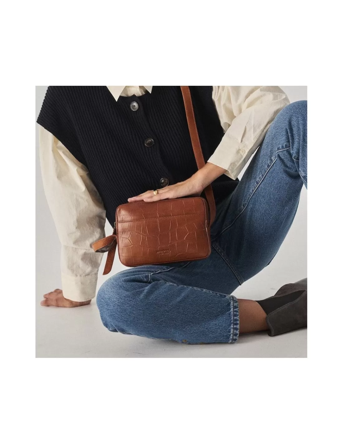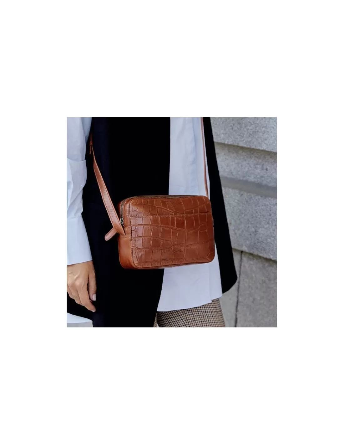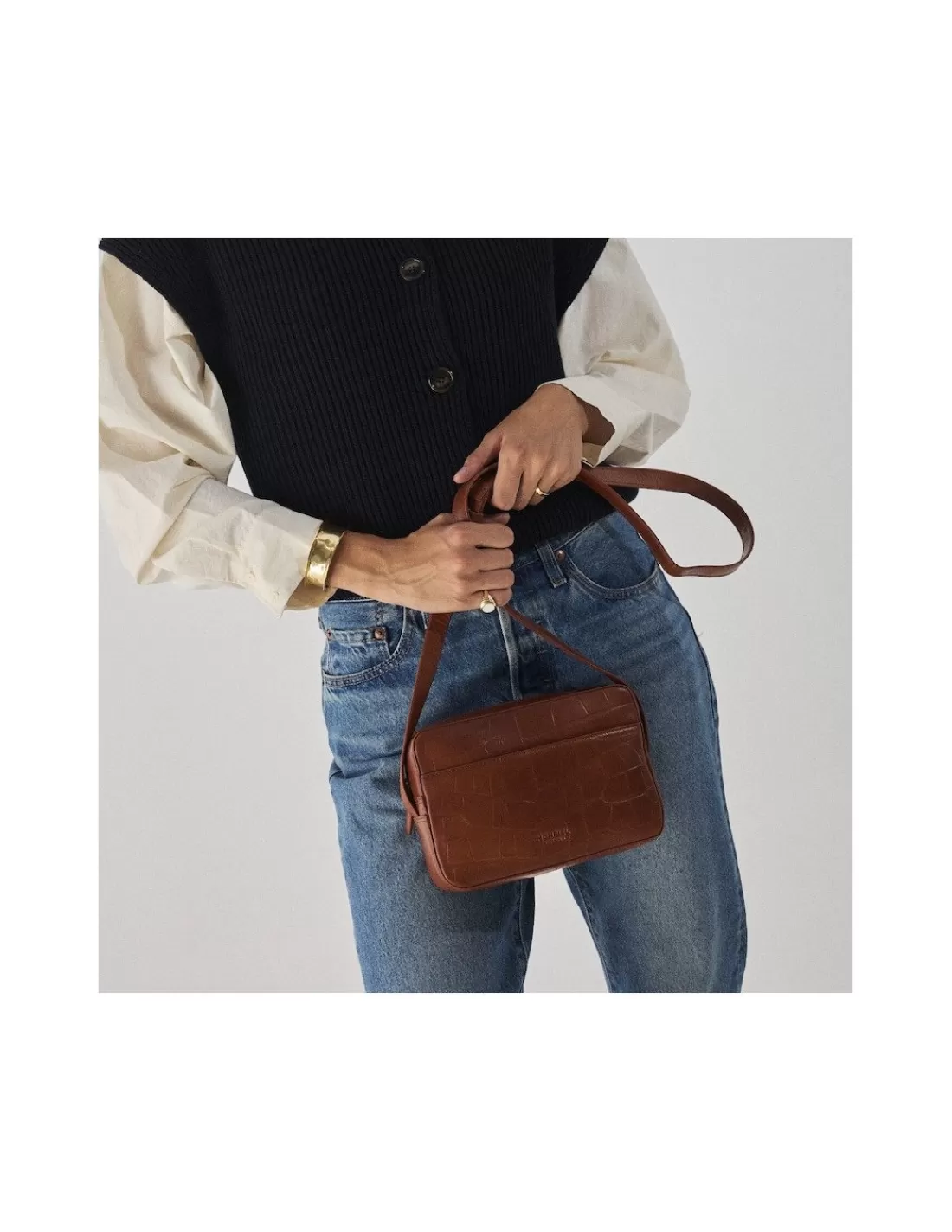 Bolso bandolera de piel realizado en piel vacuno 100% natural, piel grabada de vacuno con impresión de cocodrilo. El modelo perfecto para diario ahora con un toque chic. Este bolso de piel para mujer te durará años y será el bolso que heredarán tus hijas, un modelo clásico, sùper cómodo y muy versátil que te durará años. Gran capacidad en espacio reducido, será el mejor aliado tanto de día como de noche, si lo llevas de viaje no te lo quitarás de encima. Disponible en dos colores: cuero y negro.